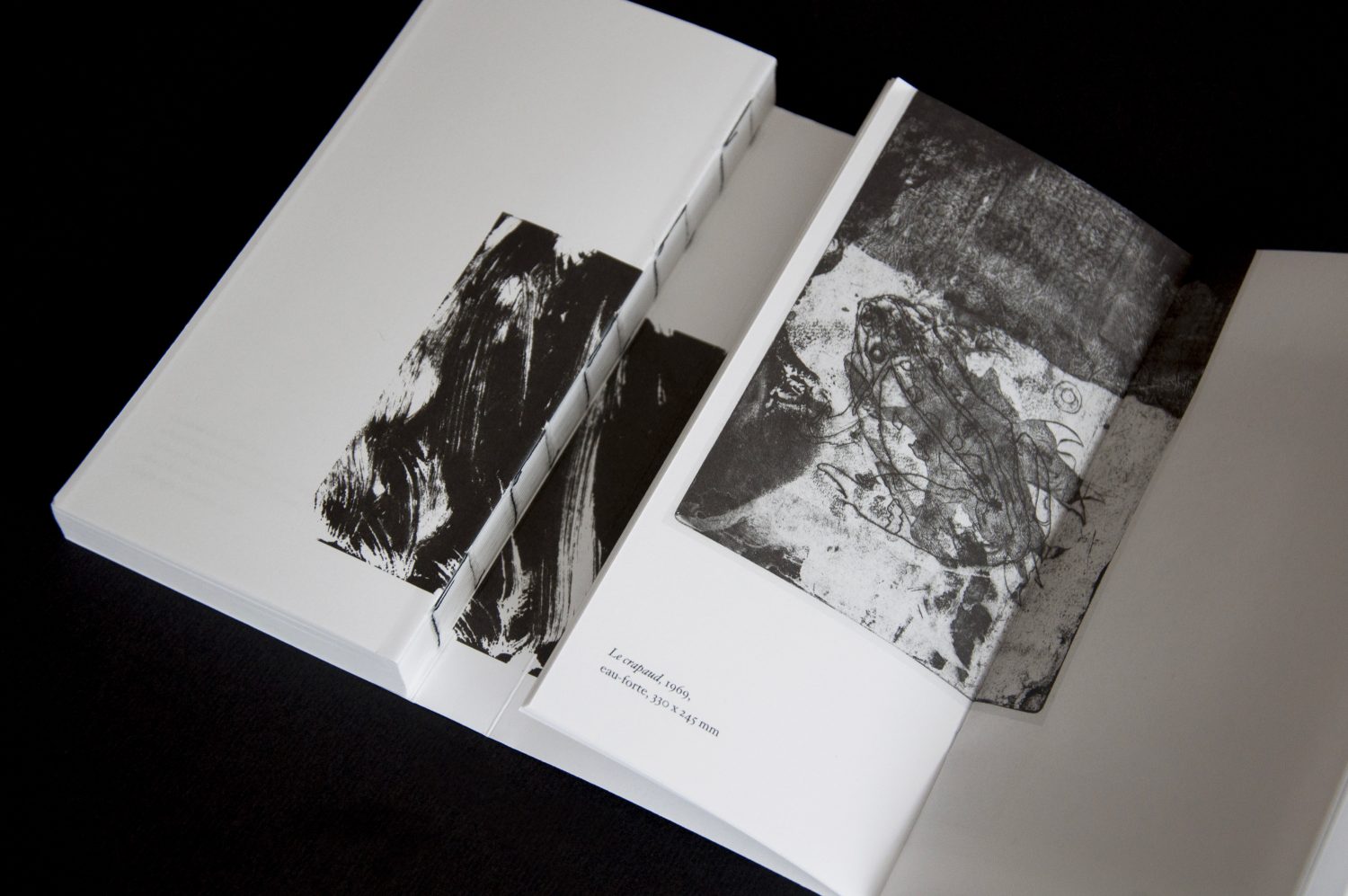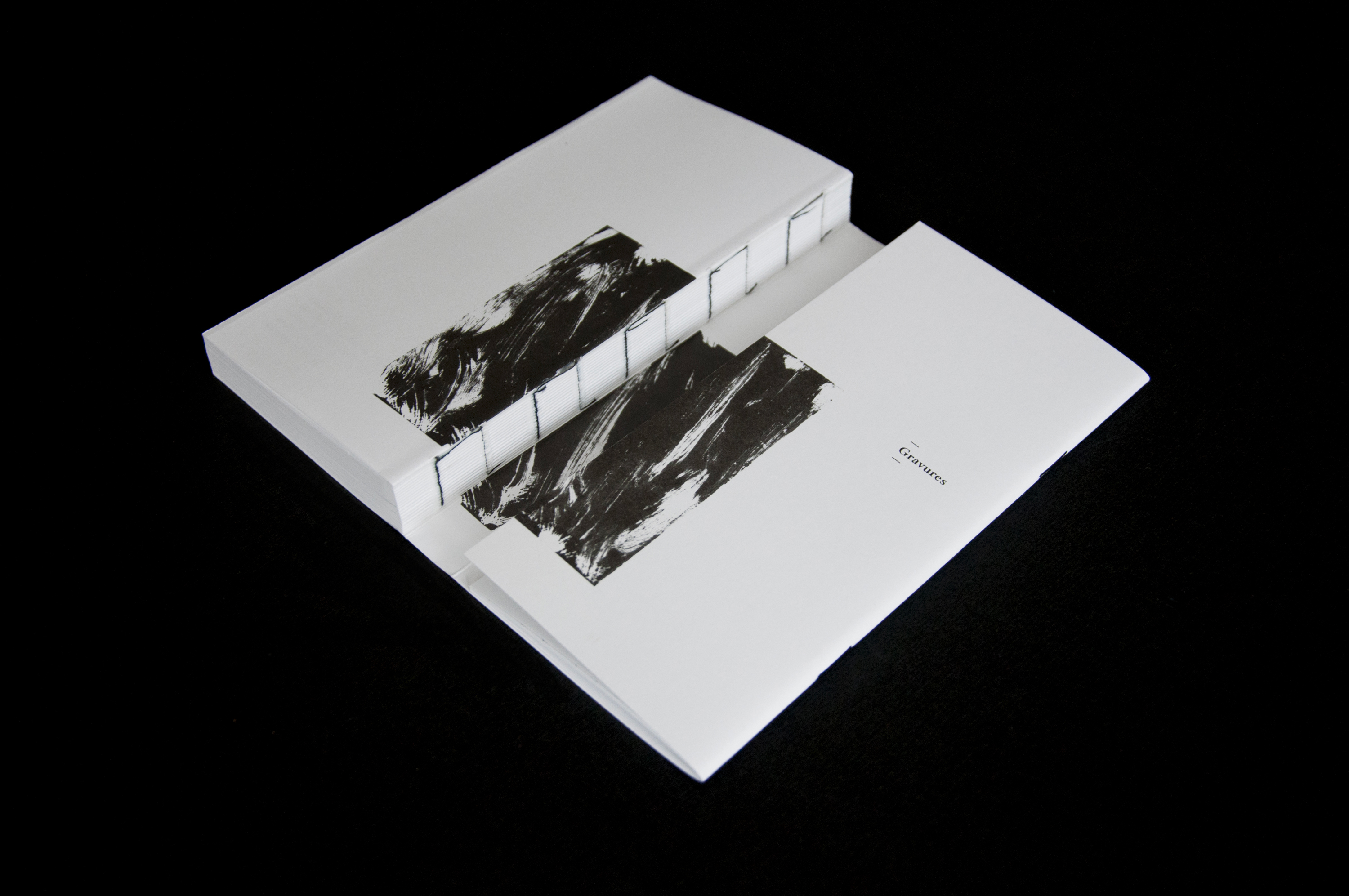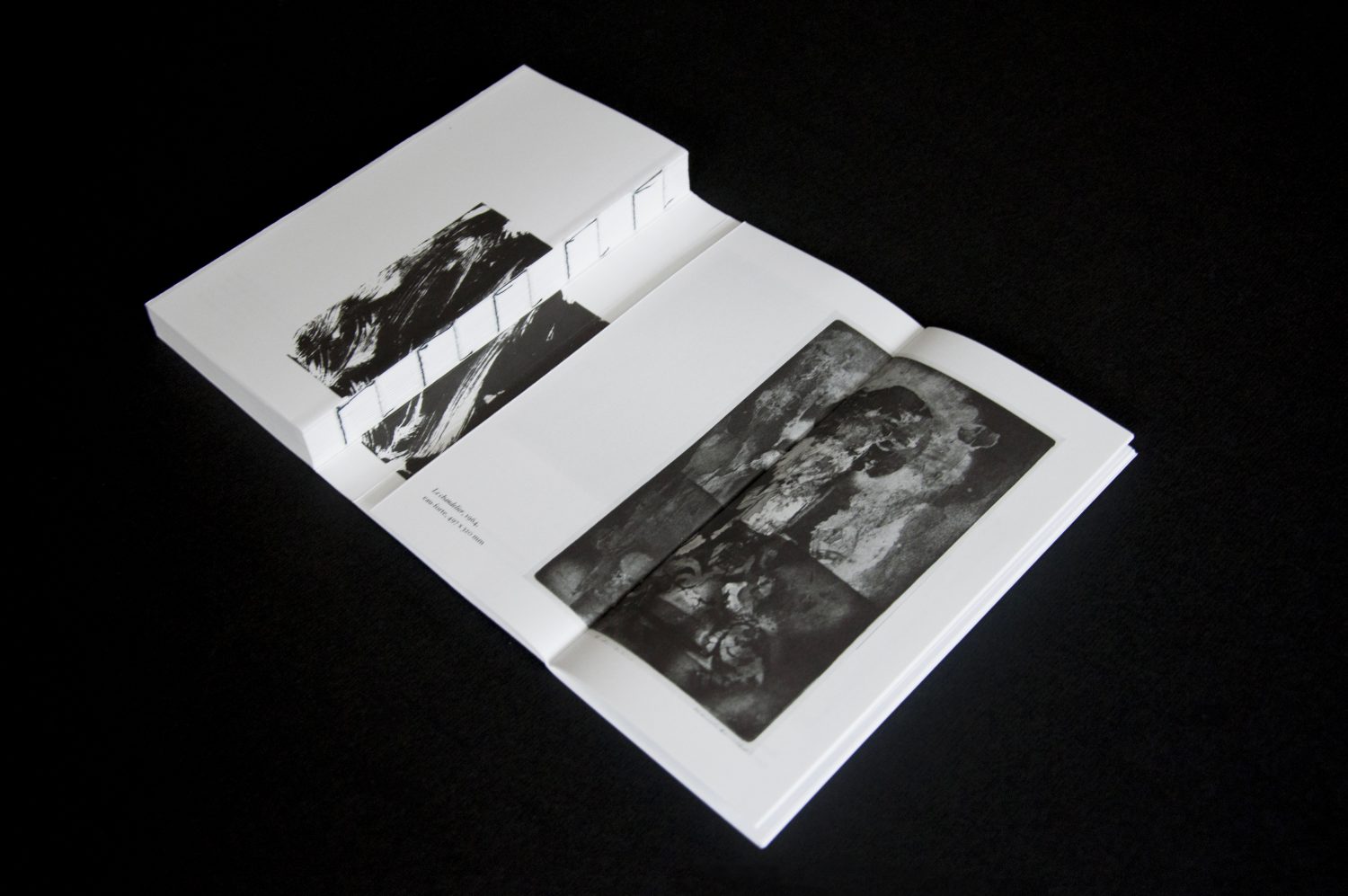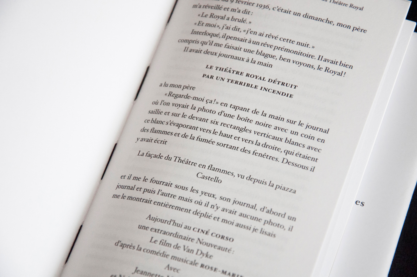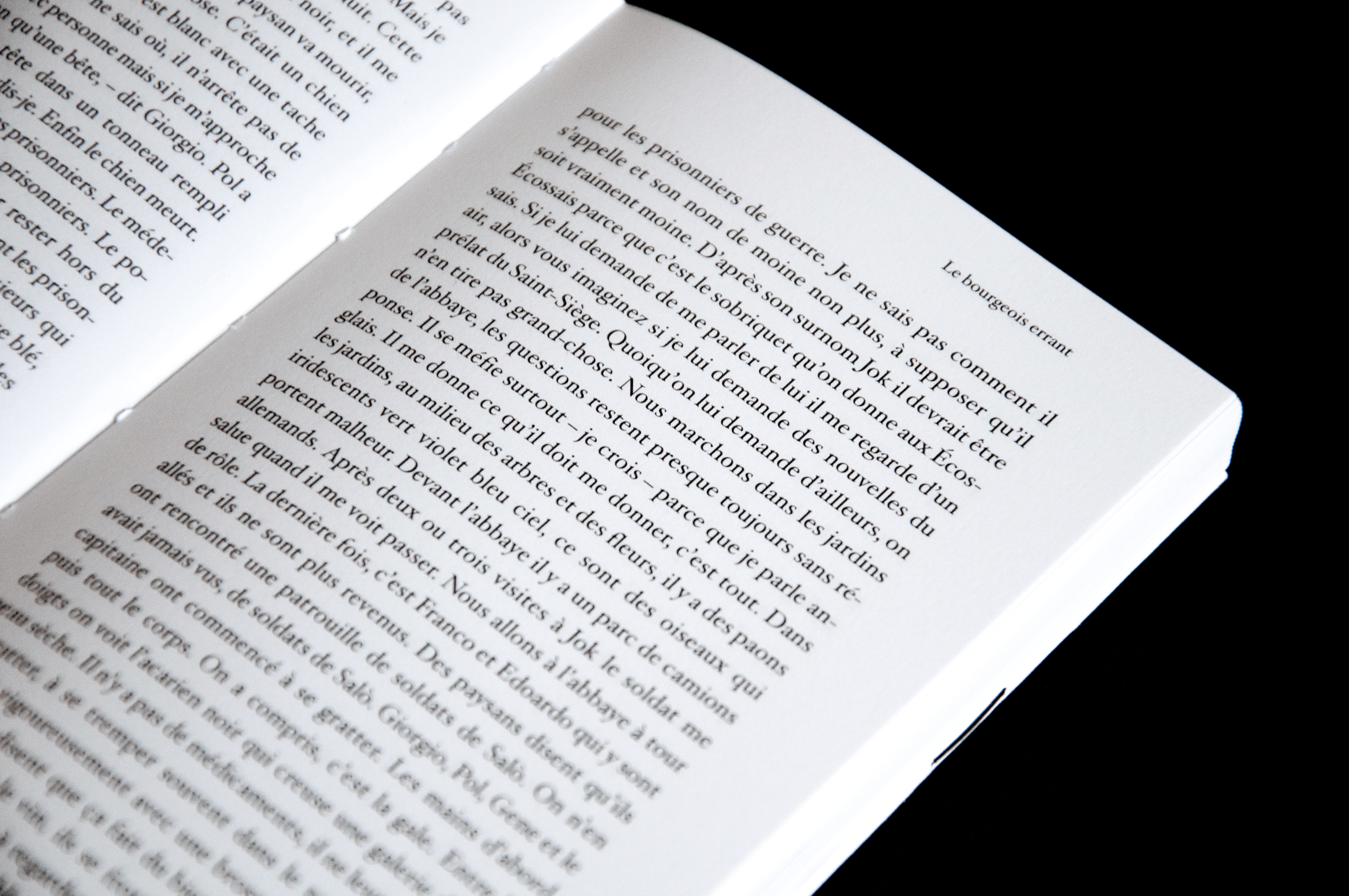 Conception de l’ouvrage « Mario Lattes ». Les deux types de mises en pages développées correspondent aux deux romans : « Le bourgeois errant » et « L’incendie du théâtre royal ». L’objet, à la reliure apparente, se déploie en trois volets, laissant le lecteur découvrir en fin d’ouvrage un portfolio d’œuvres graphiques de l’auteur.