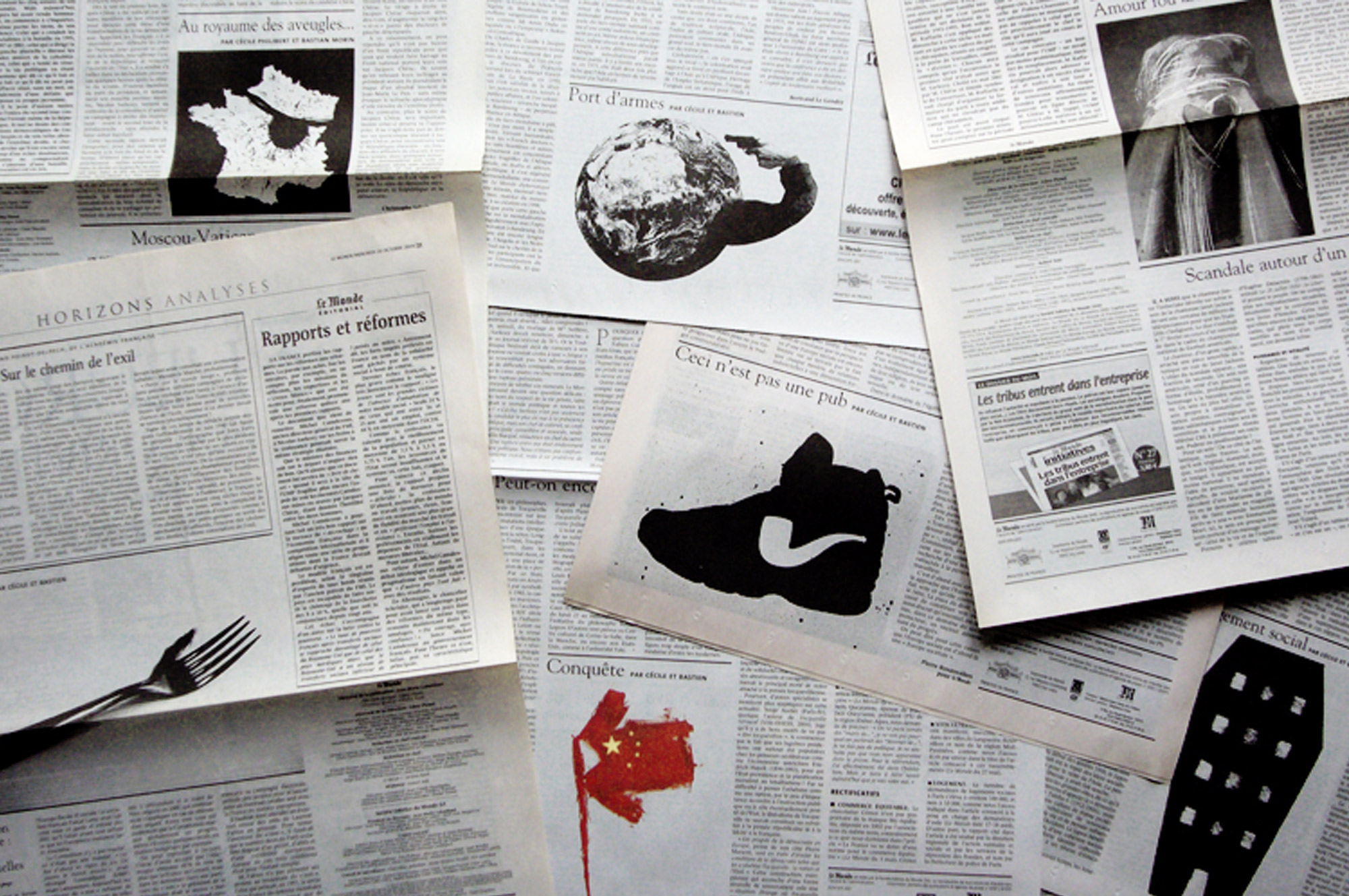Sélection d’images (parmi plus de trente) parues dans le journal « Le Monde » entre 2002 et 2006, réalisées en réaction à l’actualité. Ces images n’illustrent pas un article, mais donne un point de vue personnel sur un sujet.