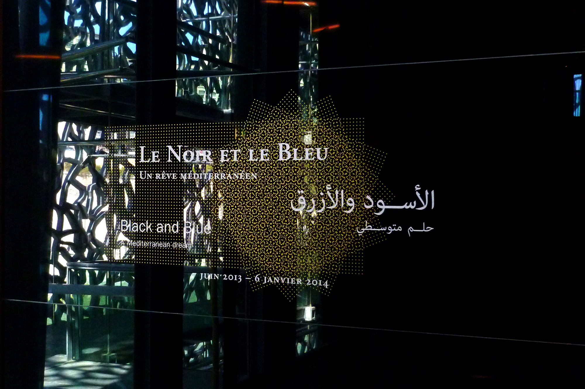 Conception de la signalétique et du livret d’accompagnement de l’exposition « Le Noir et le Bleu » présentée au Mucem, Marseille.