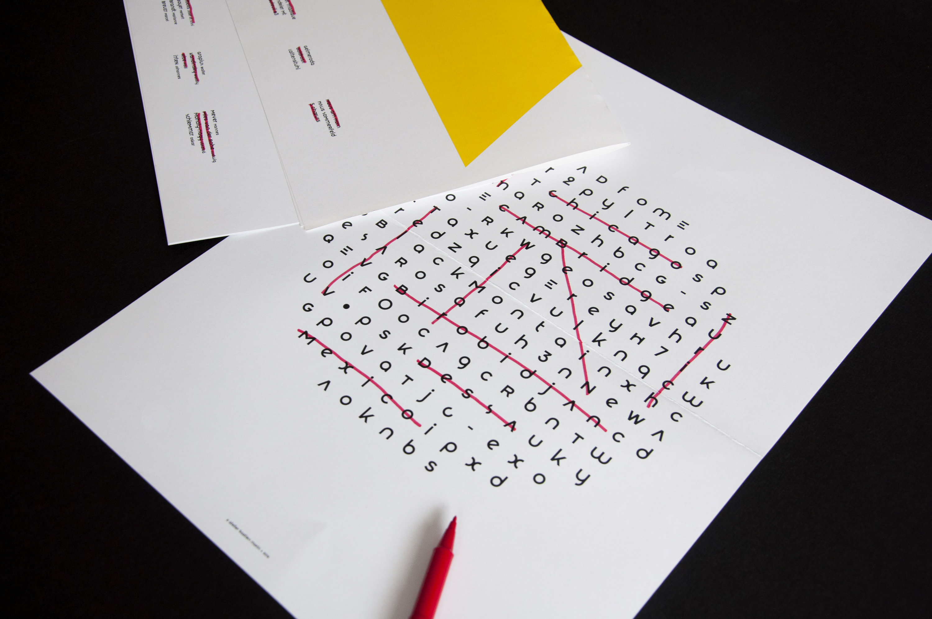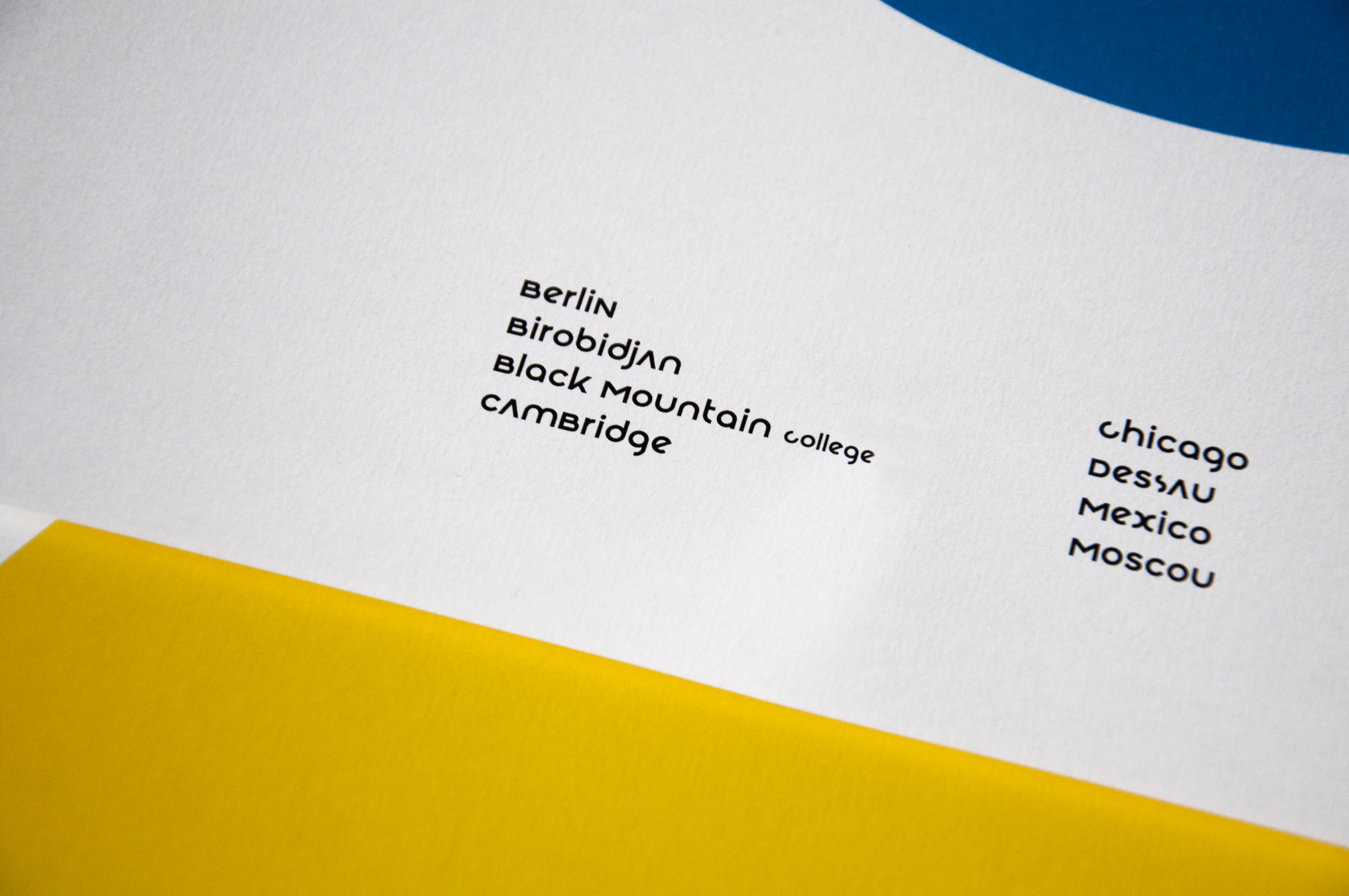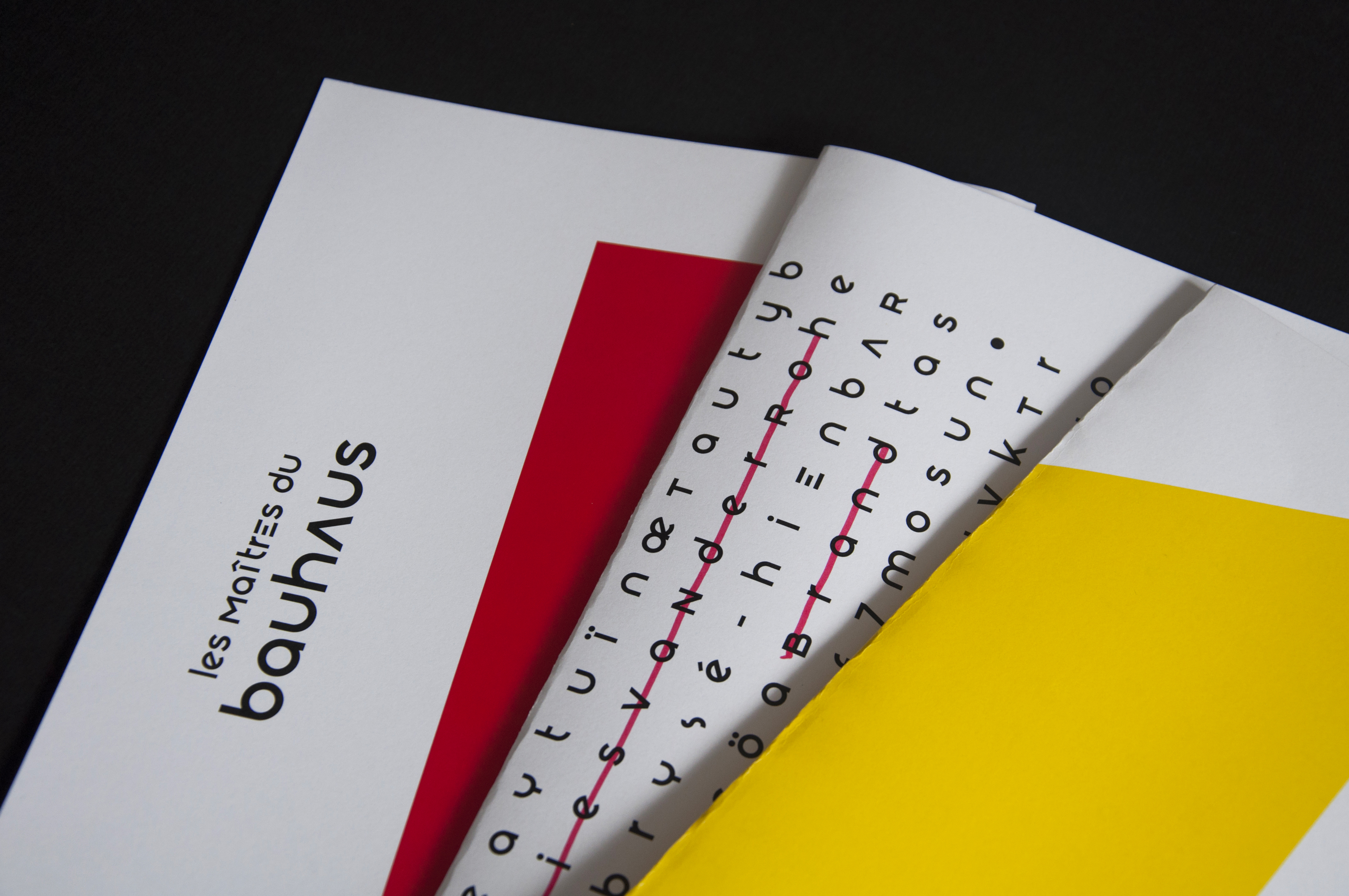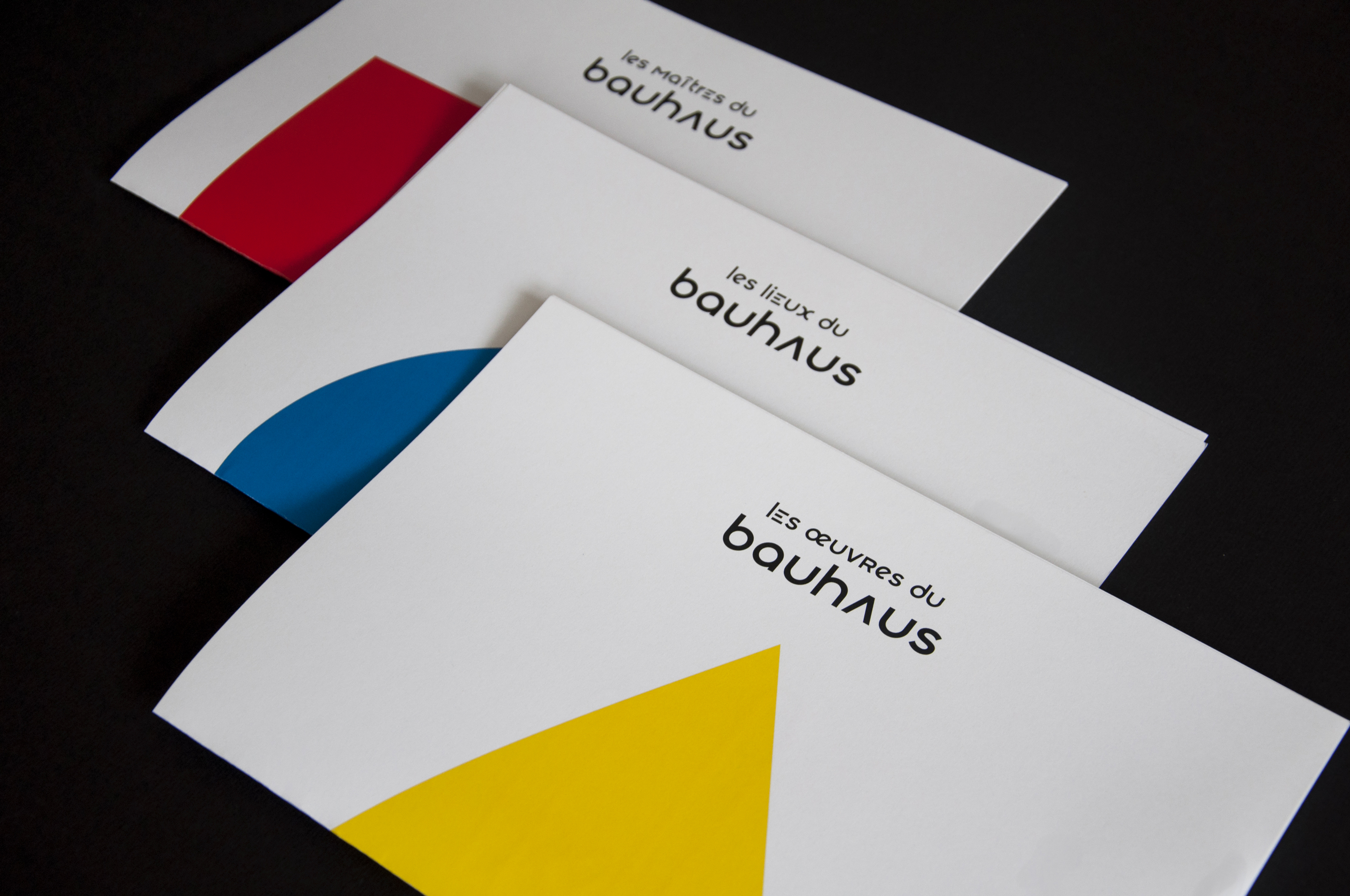 Création et conception d’un produit dérivé autour de l’exposition « L’Esprit du Bauhaus », distribué par Arteum. Basé sur la typographie originale dessiné pour l’identité visuelle de l’exposition, l’objet se compose de trois affiches et d’une règle du jeu qui permet de découvrir les mots-clefs du mouvement sous la forme de « mots mêlés ». Le carré rouge pour les maîtres du Bauhaus, le cercle bleu pour les lieux, et le triangle jaune pour les œuvres.