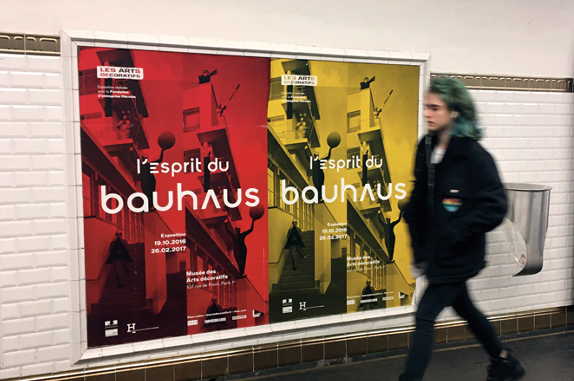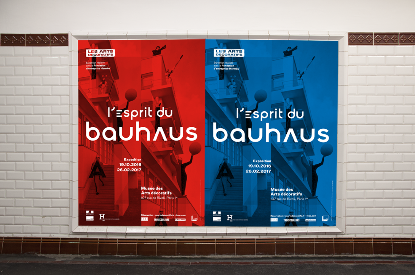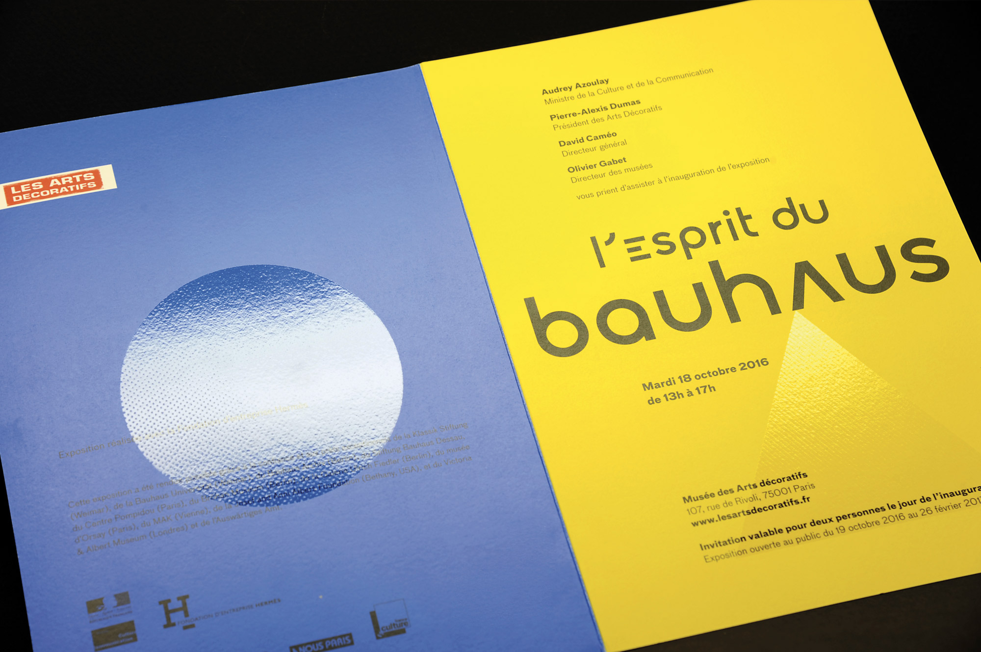 Direction artistique et conception de l’identité visuelle et des documents de communication de l’exposition « l’esprit du Bauhaus ».