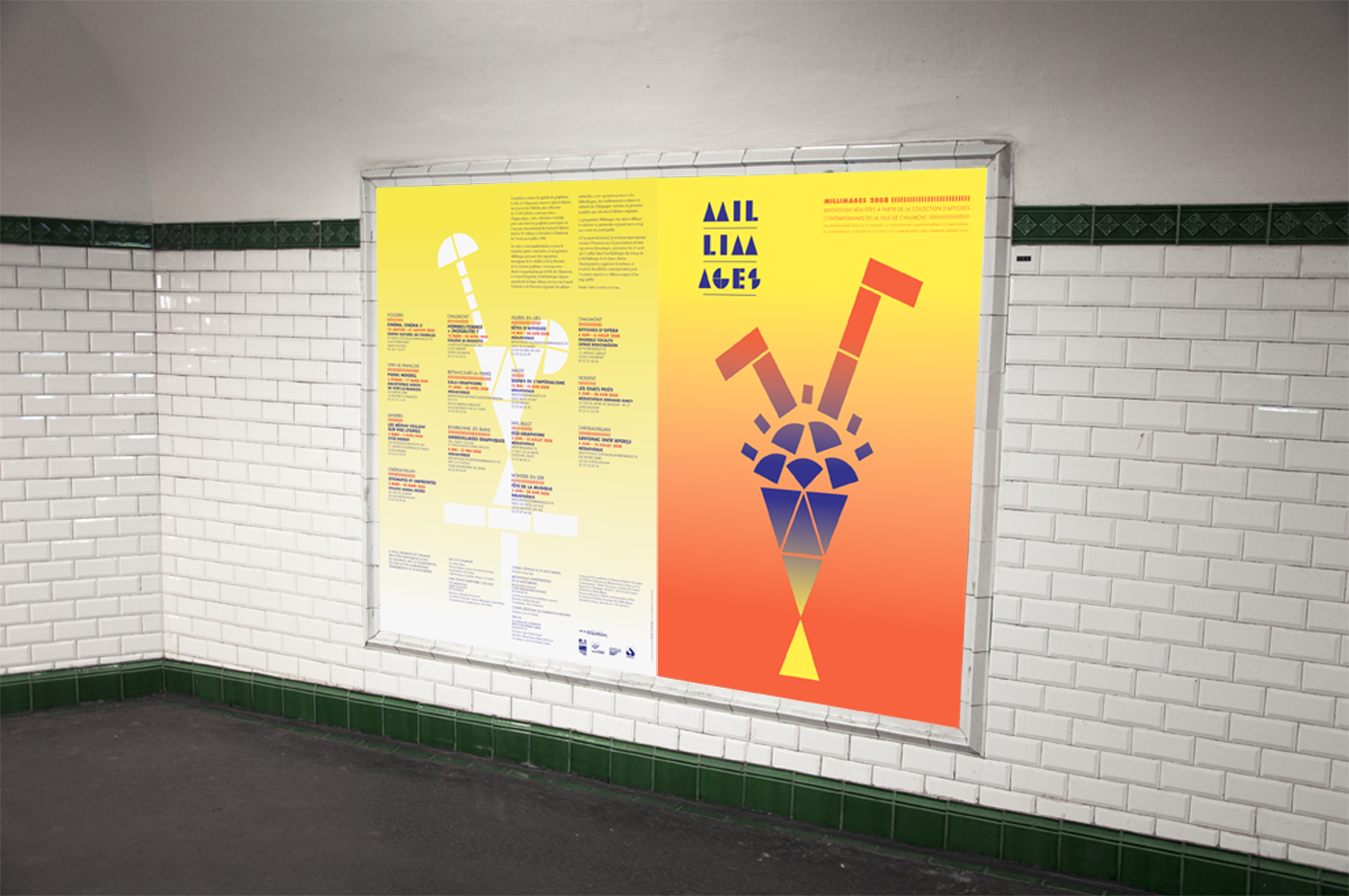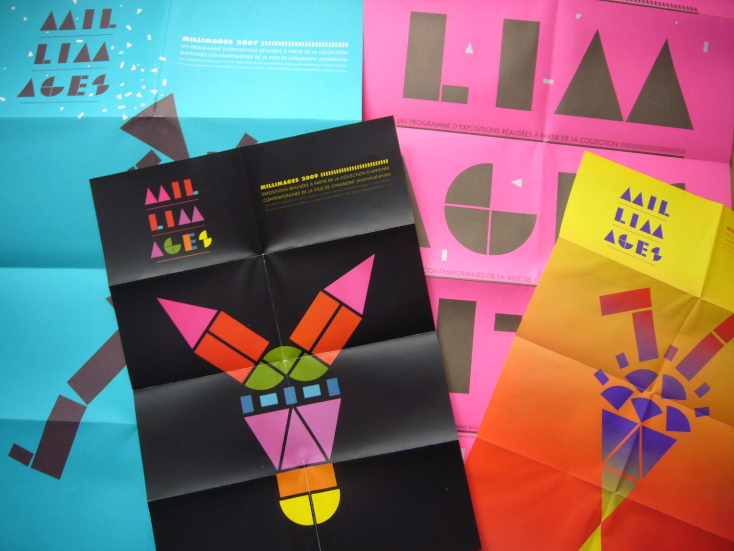 Conception de l’identité visuelle et des documents de communication de « Millimages », série d’expositions organisées à partir de la collection d’affiches contemporaines de la ville de Chaumont.