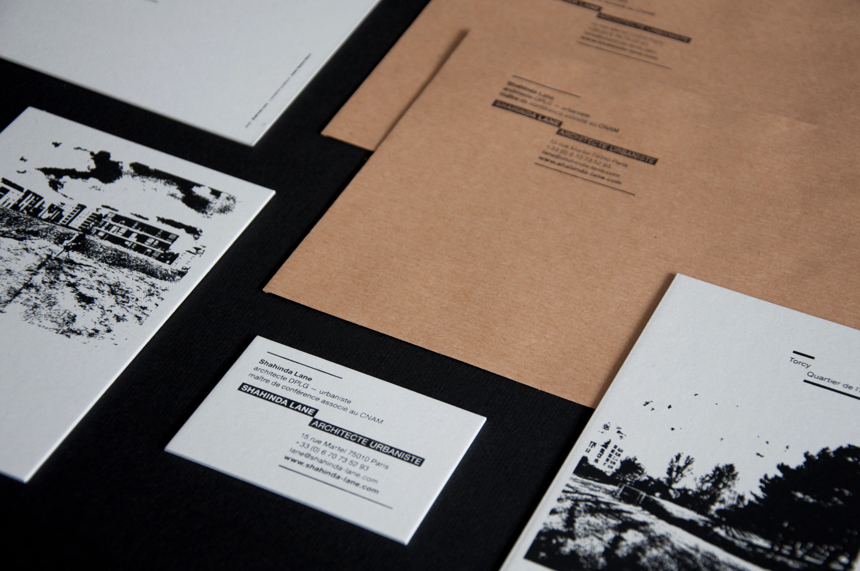 Conception de l’identité visuelle et des documents de communication de l’agence Shahinda Lane Architecte Urbaniste.