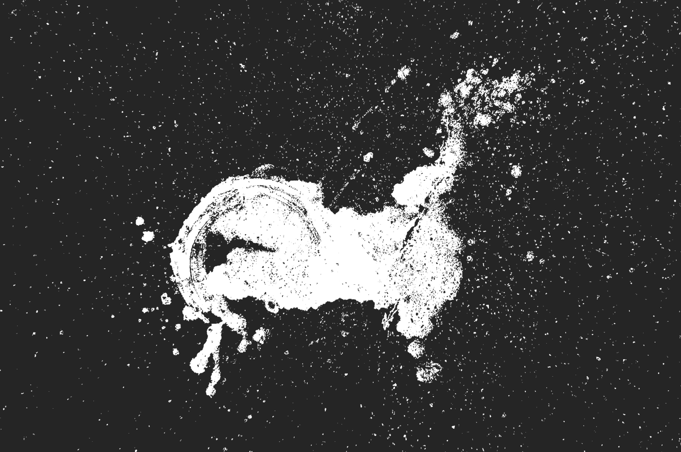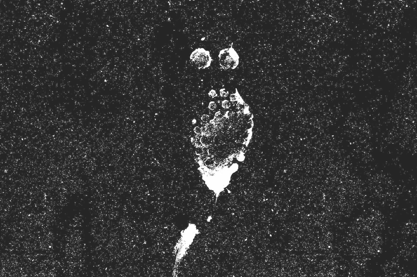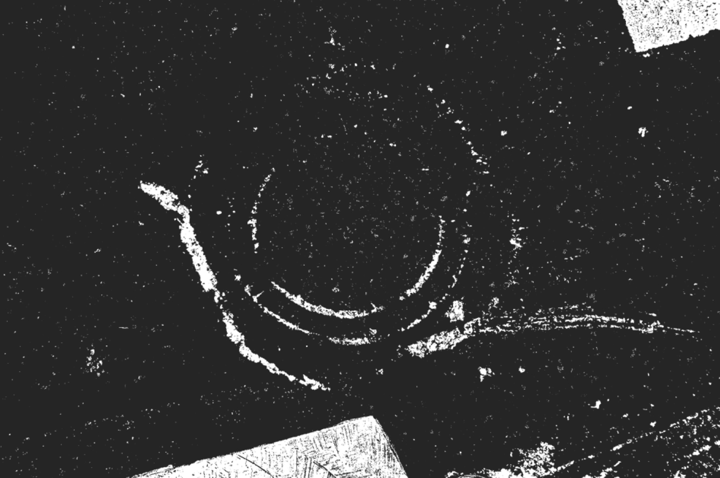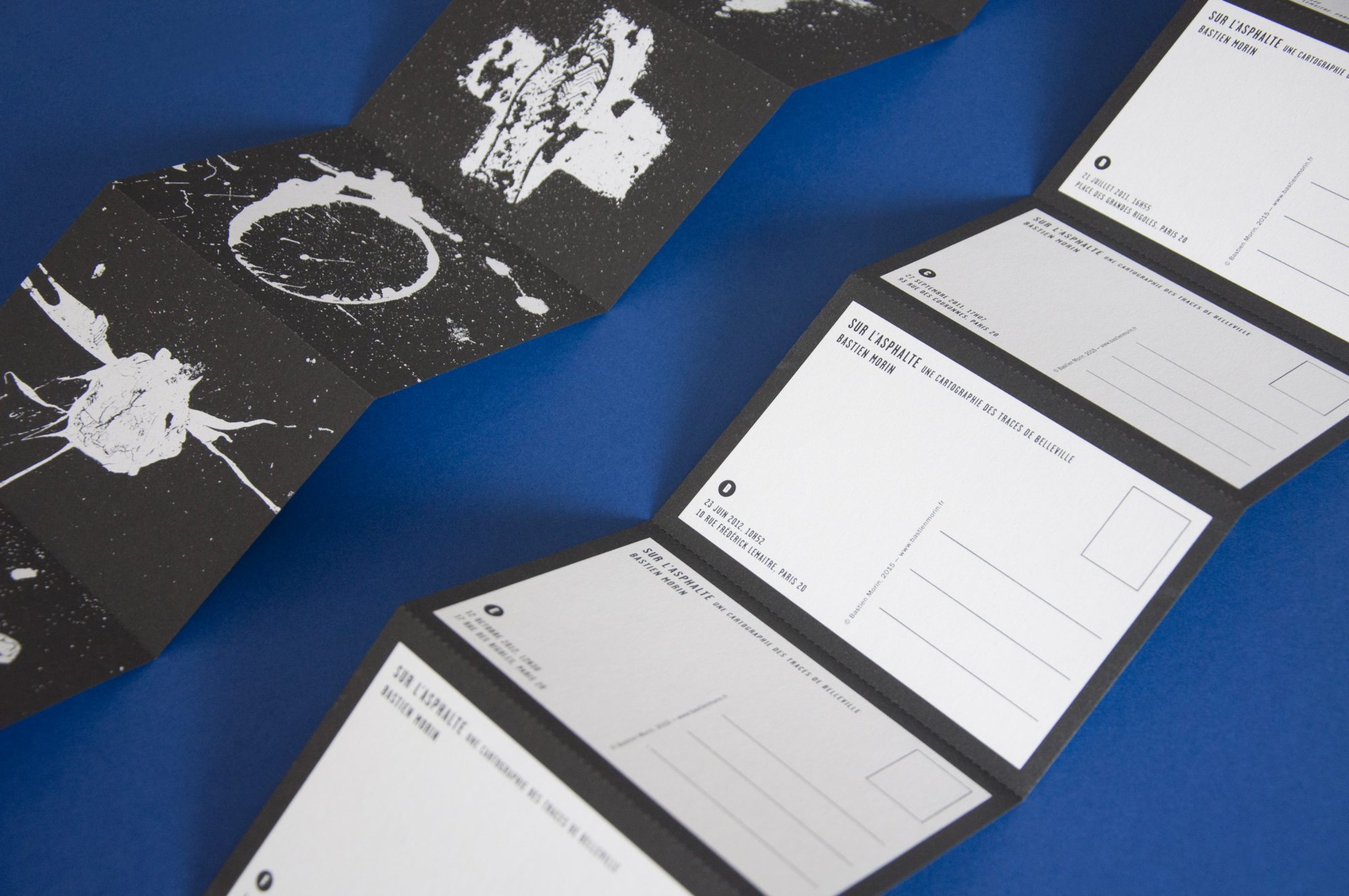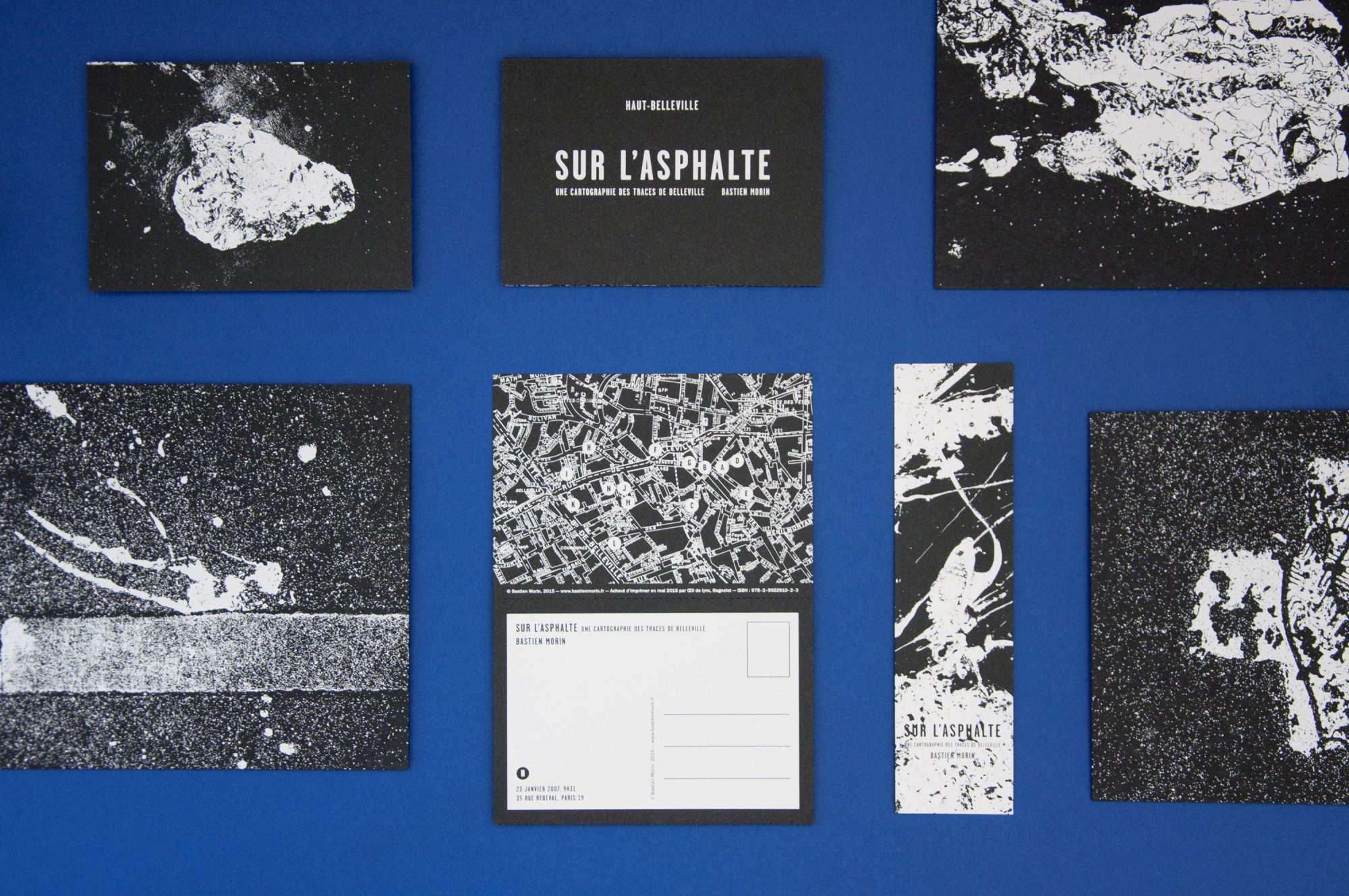Des tâches, des formes, des signes, des empreintes… les traces d’un événement, une mémoire imprimée sur l’asphalte, une cartographie sensible du quartier.
